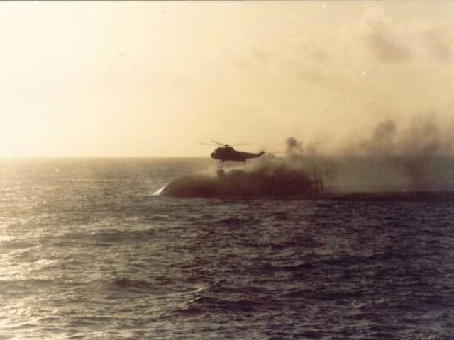 Arribó a las islas el día 20 de abril. El 25 de mayo fue atacada y hundida.