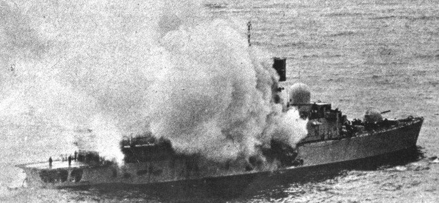 Arribó a las islas el día 25 de abril. Fue atacada el 4 de mayo por aviones de la Aviación Naval. Sufrió un Exocet, hundiéndose el 9 de mayo.