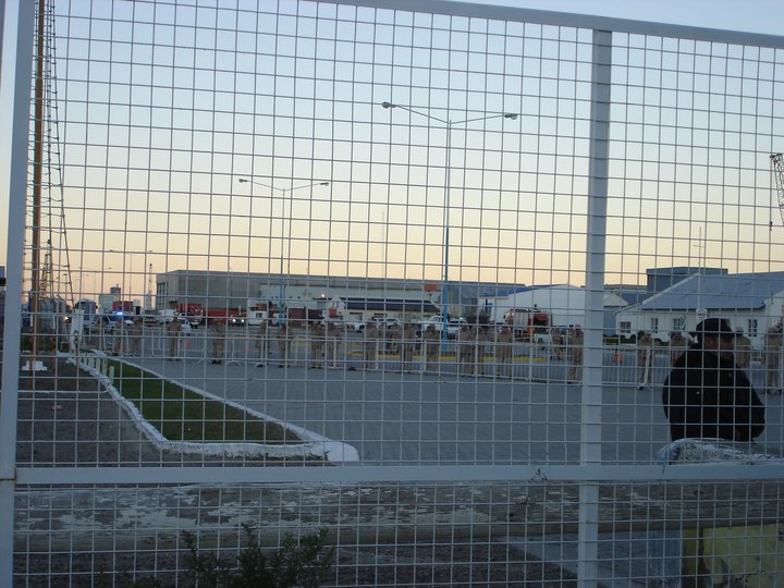 18 horas. La manifestación se trasladó al puerto. La policía y la Prefectura impidieron el acceso, custodiando los barcos británicos.