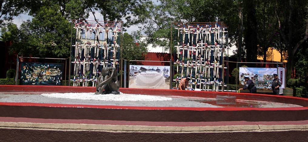 Cultural Frida Kahlo, Dpto de Coyoacán, ciudad de México. La muestra de la Comisión de Familiares de Caídos en Malvinas e Islas del Atlántico Sur fue instalada por el Observatorio Malvinas de la UNLa y permanecerá expuesta en México por el lapso de un mes. Se trata de las Cruces que estuvieron durante casi dos décadas en el Cementerio de Darwin, donde descansan los Héroes Nacionales que cayeron defendiendo nuestra soberanía en las Islas usurpadas por Gran Bretaña. En la actualidad, se erige allí el Monumento a los Caídos en Malvinas e Islas del Atlántico Sur, que recuerda a los 649 Héroes Nacionales, y que fuera declarado Lugar Histórico y Cementerio de Guerra, por Decreto del Poder Ejecutivo Nacional y Ley del Congreso de la Nación. La Muestra se inscribe en las actividades promovidas en el 30º aniversario de la recuperación de Malvinas e Islas del Atlántico Sur en el marco de los Grupos de Apoyo a la Causa de Argentina en el Exterior.