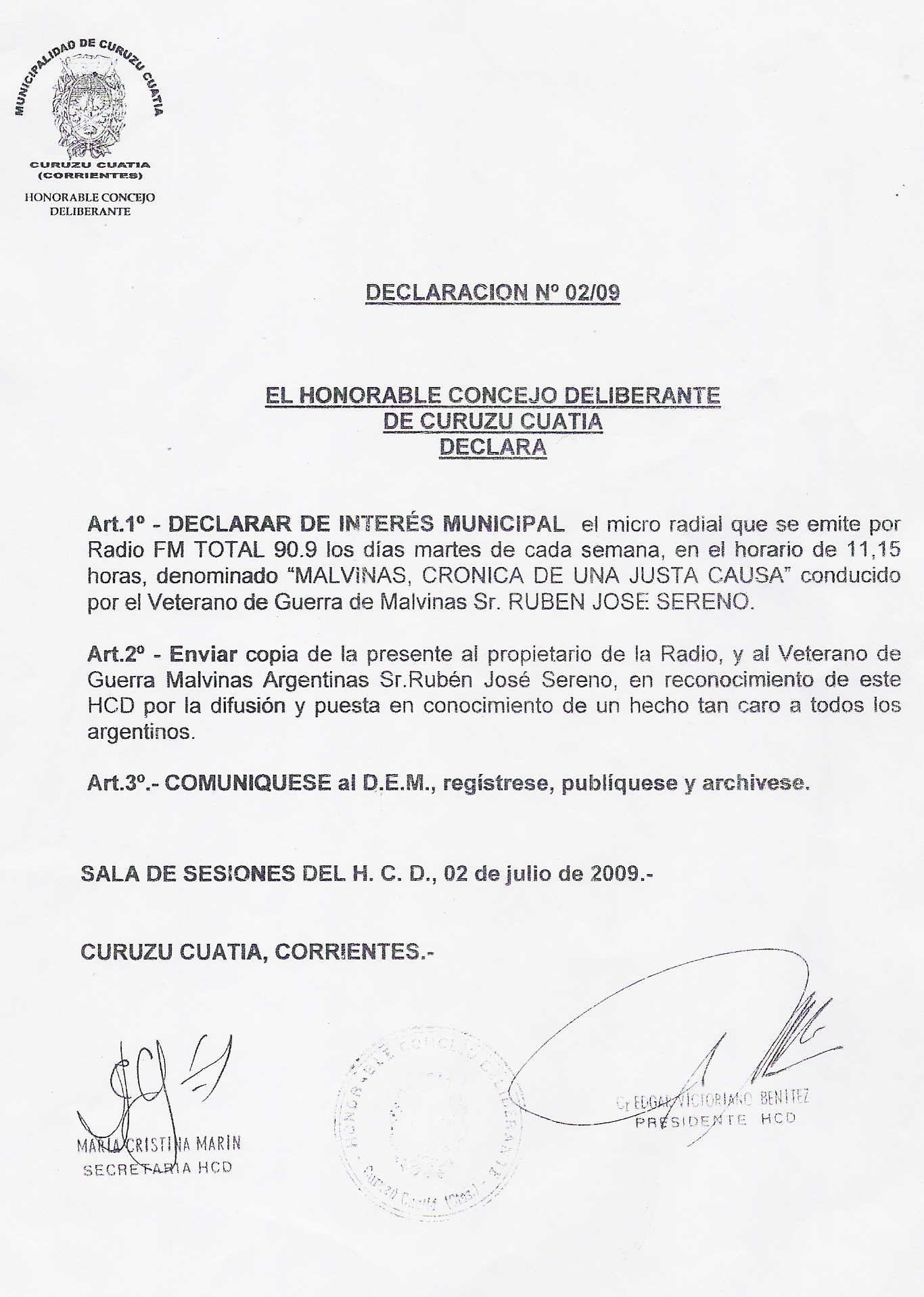 | Malvinas, crónica de una causa justa declarado de interés en Curuzú Cuatia | |||||