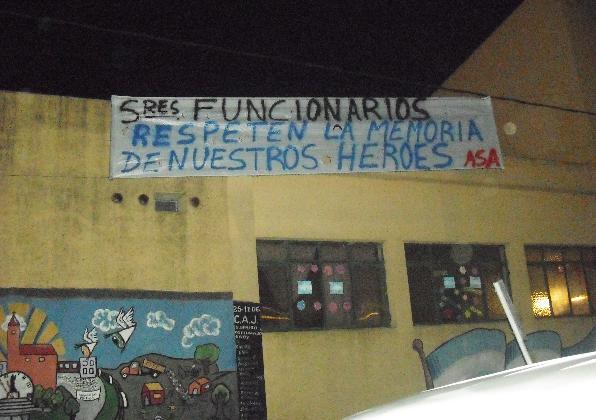 A raíz del cambio de nombre de una plaza de San Benito, Entre Ríos llamada Héroes de Malvinas por "el sueño de los ángeles", la Agrupación Sentimiento Argentino colocó pancartas por todo el pueblo... Mediante el presente comunicado deseamos expresar nuestro mas enérgico