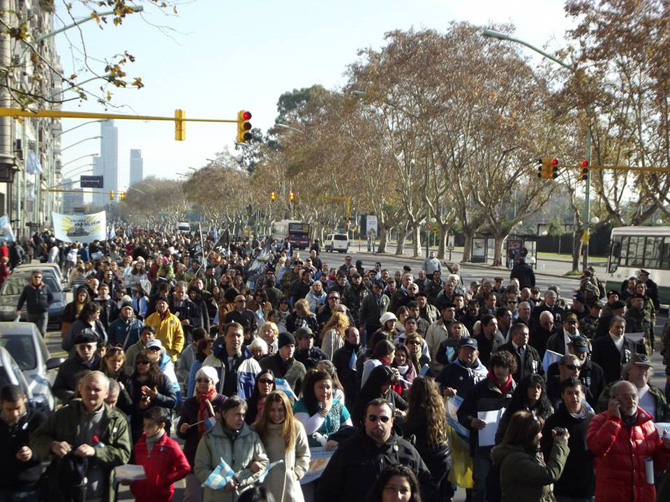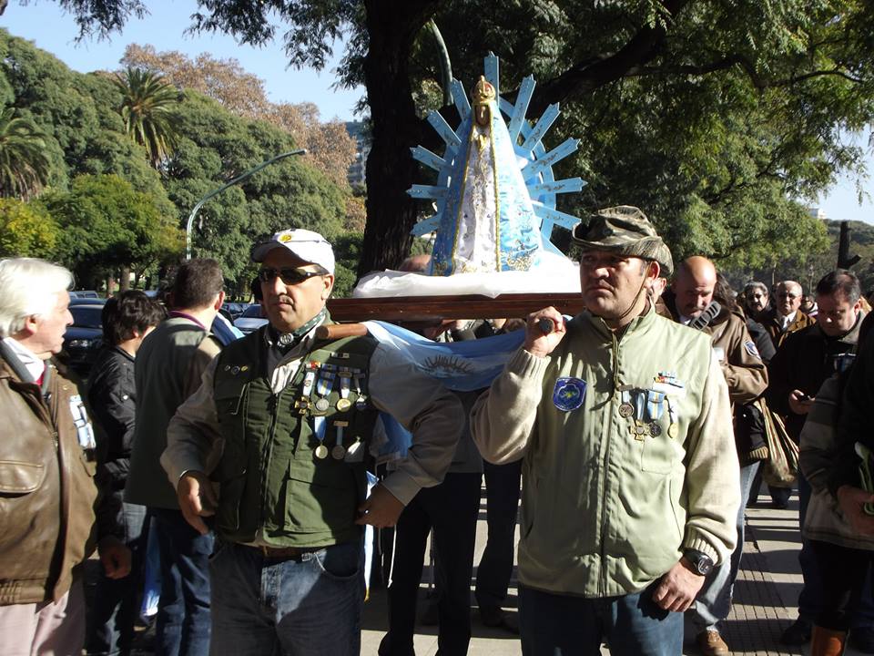 Veteranos, familiares, malvineros... cuadras enteras de banderas argentinas