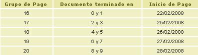 Grilla con los días para cobrar la pensión nacional, según terminación del DNI, correspondiente al mes de febrero de 2008...